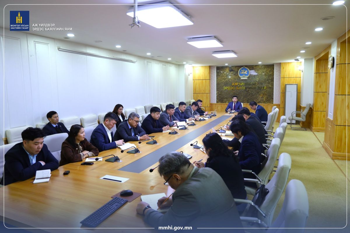 Аж үйлдвэр, эрдэс баялгийн яам ээлжит шуурхай хурлаа зохион байгуулж, салбарын ажлуудын хэрэгжилт, тулгамдсан асуудлаа хэлэлцлээ. Хурлыг Төрийн нарийн бичгийн дарга Б.Дашпүрэв удирдан явуулж ажлын гүйцэтгэлтэй танилцаад холбогдох нэгж, албан тушаалтнуудад дараах чиглэл, үүргийг өглөө. Үүнд: