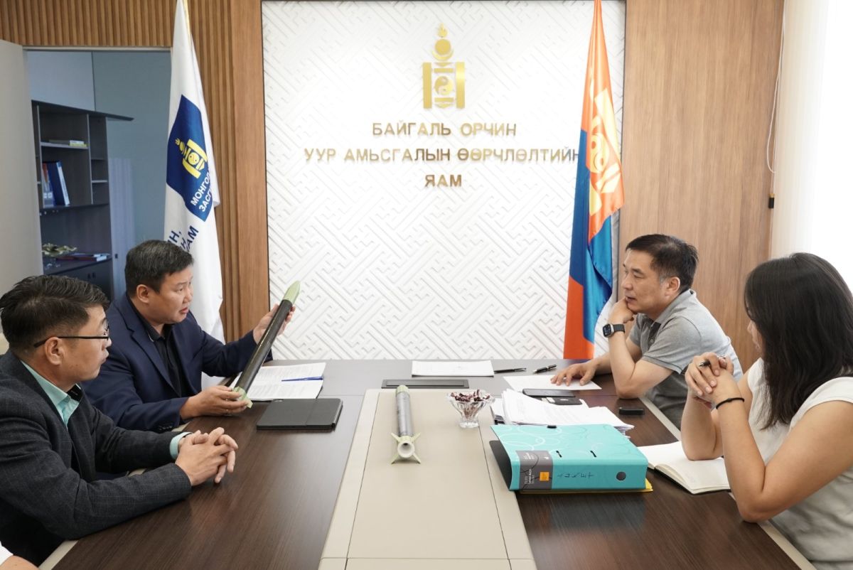 Байгаль орчин, уур амьсгалын өөрчлөлтийн сайд Б.Батбаатар энэ сарын 5-нд ЦУОШГ-т ажиллалаа. Энэ үеэр ЦУОШГ-ын дарга Э.Баттулга борооны пуужинг дотооддоо угсрах туршилтын төслөө салбарын сайдад танилцуулав.