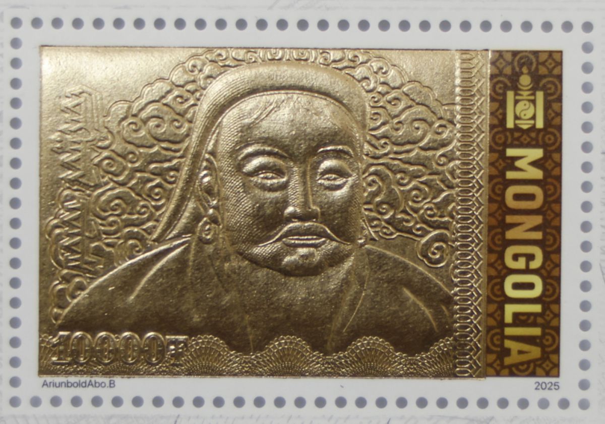 Одоогийн гүйлгээнд буй том дэвсгэртүүдэд байрлах эзэн Чингис хааны хөргийг 22 каратын алттай, товгор загварын марк болгон хэвлэсэн. Энэ нь 22 каратын алтан ялтсыг халуун даралт ашиглан маркийн үндсэн материал дээр нааж, товгор дармал эффект үүсгэдэг өндөр зэрэглэлийн хамгаалалтын болон гоёлын технологи юм.