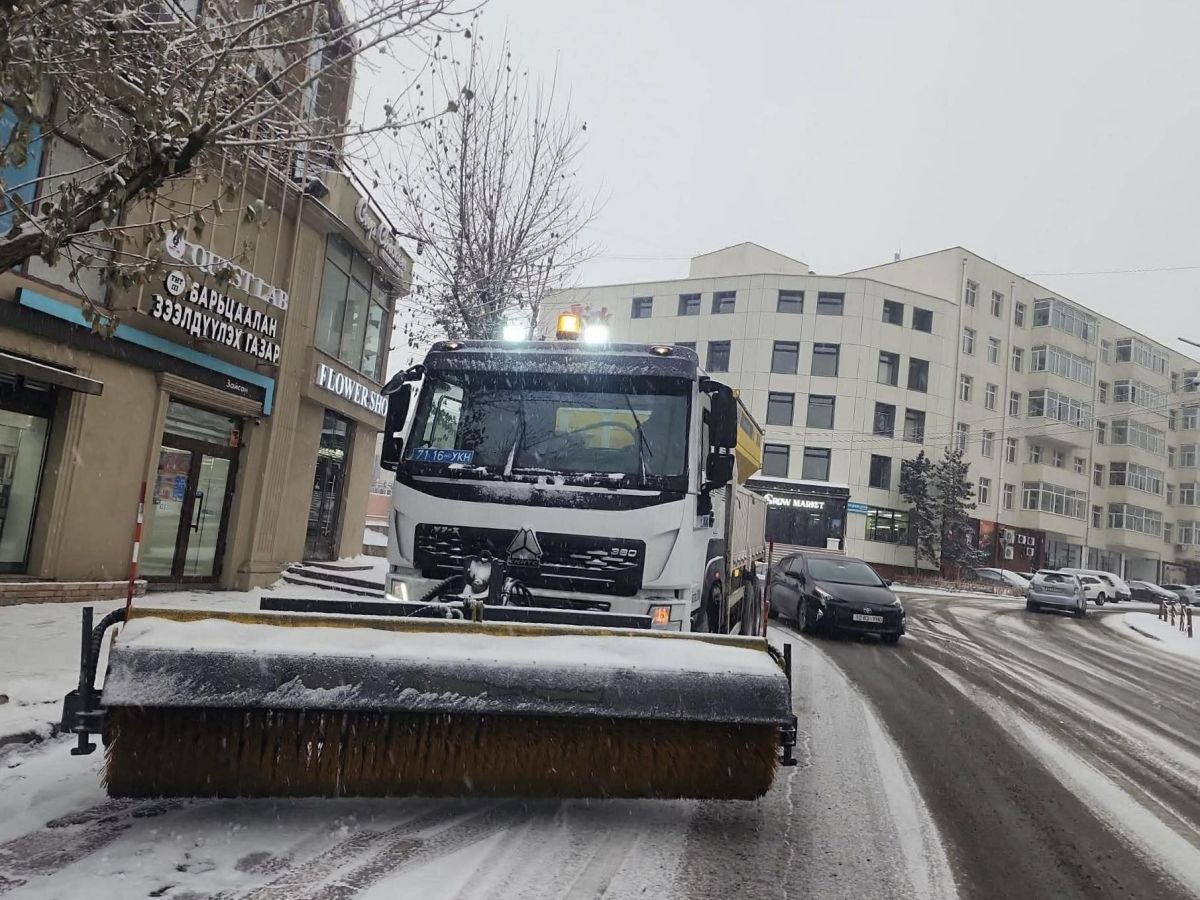 Хан-Уул дүүргийн зам талбайн цэвэрлэгээ хариуцсан байгууллагууд цас орохоос өмнө давс, бодиc ачиж, бэлтгэн хариуцсан зам талбайд бүрэн бүрэлдэхүүнээрээ ажиллаж байна.
