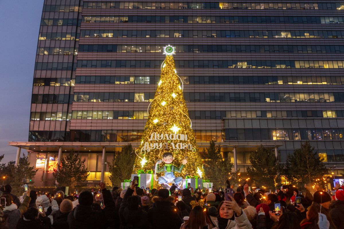 Төв талбайд цугласан 400 ажилтан өвлийн жаврыг хамт олныхоо халуун уур амьсгалаар зөөллөн, дулаахан үгсээ хэлж гацуураа гэрэлтүүлэв.