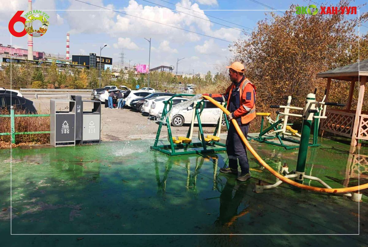 Ногоон байгууламжийн арчлалт хариуцсан 10 байгууллага 28000 м.кв талбайн ногоон байгууламжийн угаалга цэвэрлэгээ, 1800 м хашлагийг угааж засварласан;