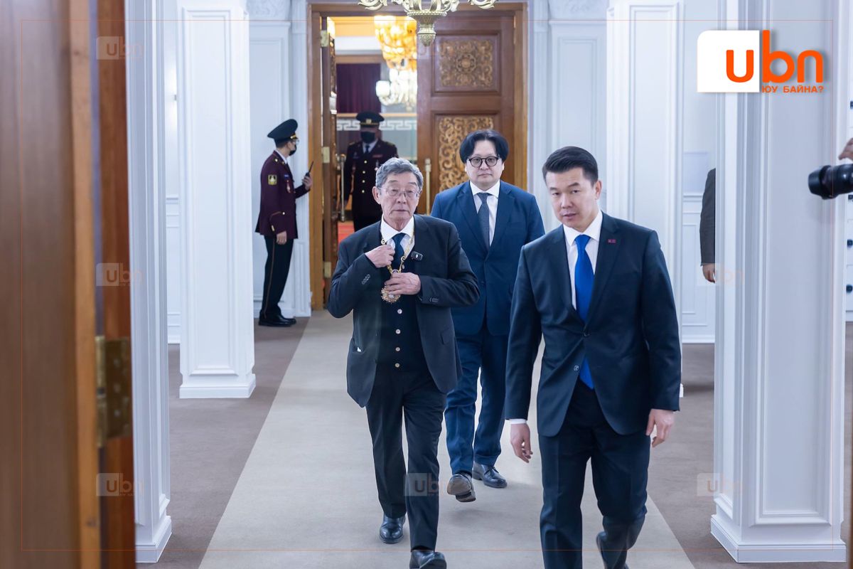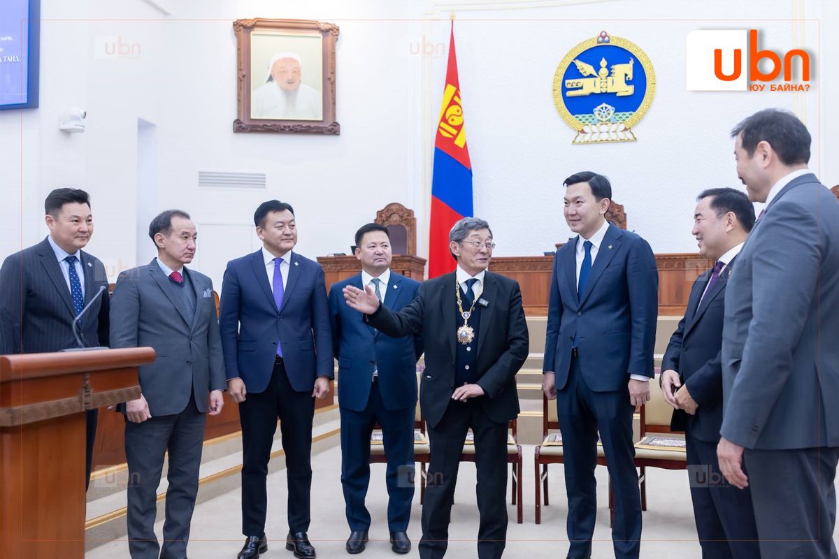 Улсын Их Хурлын дарга Н.Учрал өнөөдөр (2025.12.10) Монгол Улсын төрийн тэргүүн зэргийн “Чингис хаан” одон хүртсэн академич С.Нарангэрэлд хүндэтгэл үзүүллээ. Хүндэтгэл үзүүлэх ёслолд Улсын Их Хурлын дэд дарга Ж.Бат-Эрдэнэ, Б.Пүрэвдорж, Байнгын хорооны дарга Д.Цогтбаатар, Б.Найдалаа, Улсын Их Хурлын гишүүн, академич Д.Рэгдэл, Д.Бум-Очир, О.Саранчулуун, С.Зулпхар, Ц.Мөнхбат болон албаны бусад хүмүүс оролцов.
