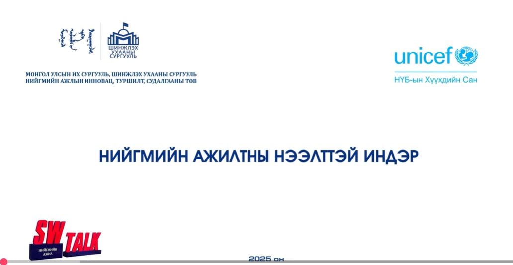 МУИС-ийн ШУС-ийн харъяа Нийгмийн ажлын инновац, туршилт, судалгааны төв болон НҮБ-ын Хүүхдийн сангийн хамтран хэрэгжүүлсэн Нийгмийн ажлын нөлөөлөл төслийн хүрээнд хийсэн Нийгмийн ажилтны нээлттэй индэр хэлэлцүүлгийн бичлэгийн линк