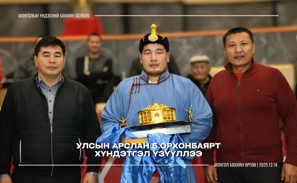 МҮБХ-ны тэргүүн Ц.Магалжав, гүйцэтгэх захирал И.Доржсамбуу нар "Physical Asia" шоунд амжилттай оролцсон Монголын багийн ахлагч Монгол улсын Үлэмж бадрах арслан Б.Орхонбаярт хүндэтгэл үзүүллээ. Тодруулж хэлбэл, Өчигдөр болсон "Алтан цом"-ын барилдааны үеэр Монгол Улс, үндэсний бөхийг дэлхийд сурталчилсанд талархаж МҮБХ болон нийт бөхчүүдийнхээ өмнөөс талархал илэрхийлсэн байна.