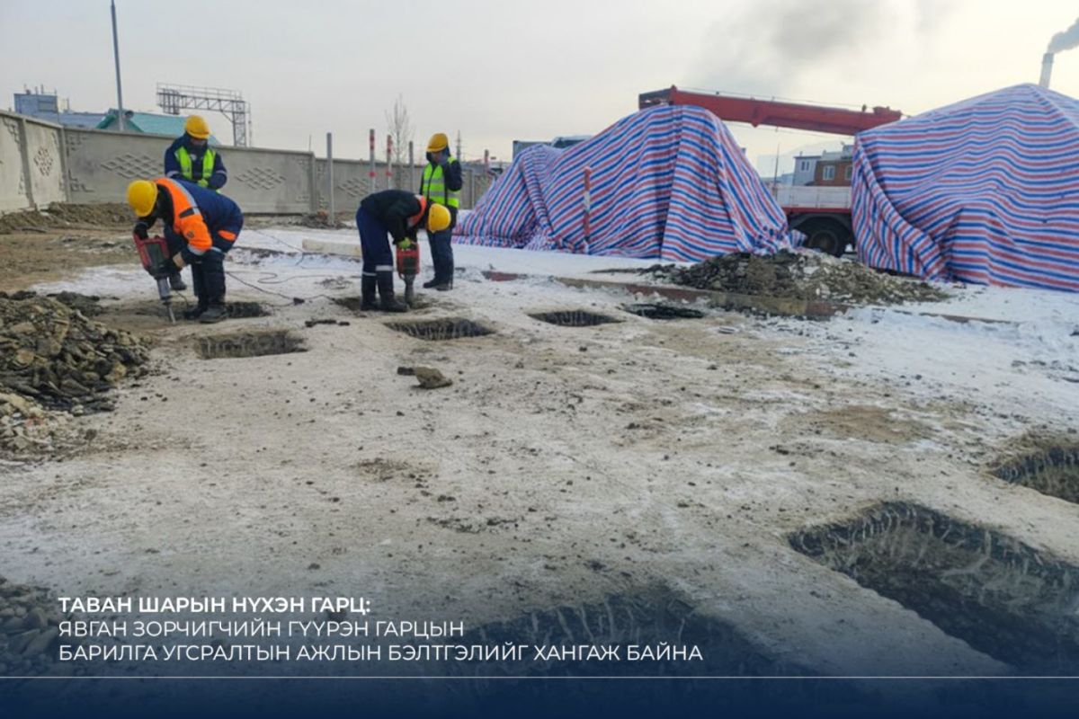 Таван шарын нүхэн гарцын хүрээнд инженерийн дэд бүтцийн ажлуудыг үе шаттайгаар хэрэгжүүлж, цахилгаан, гэрэлтүүлгийн шугам сүлжээ, гадна холбооны шугамын ажил, ус хангамж, ариутгах татуургын ажлуудыг гүйцэтгэсэн. Түүнчлэн 16,000 м.кв талбайд ногоон байгууламжийн ажил хийж, борооны ус зайлуулах насос станц, ус зайлуулах шугамыг байршуулж дууссан бөгөөд тус байршилд явган зорчигчийн гүүрэн гарцын ажил үлдээд байгаа юм.