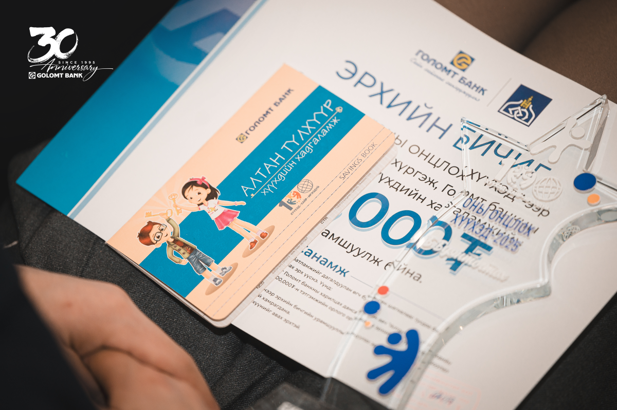 Энэ хүрээнд Голомт банк “Оны онцлох хүүхэд” арга хэмжээнд хамтран ажиллаж, онцгой амжилт гарган үе тэнгийнхнээ манлайлсан шилдэг хүүхдүүдийг Алтантүлхүүр хүүхдийн хадгаламжийн эрхээр урамшуулж, тэднийг ирээдүйд хуримтлалтай, санхүүгийн дархлаатай иргэн болон төлөвшихөд нь хувь нэмрээ орууллаа.