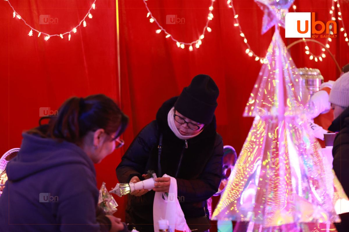 “Улаанбаатарын мөнгөн шөнө 2025” шинэ жилийн арга хэмжээг энэ сарын 31-ний өдөр төв талбайд зохион байгуулна. Энэ хүрээнд иргэдэд зориулсан зураг даруулах хэсэг, энтэртаймэнт орчин бүхий худалдаа үйлчилгээний асар, түргэн хоол зэргийг багтаасан “Крисмасс маркет” ажиллаж эхэллээ. Асрын гадна стрийт фүүд буюу явуулын үйлчилгээний халуун хоолоор үйлчилж байгаа бол асар дотор шинэ жилийн сүлд мод, чимэглэл, халуун уух зүйлс, жижиг дунд үйлдвэрлэл эрхлэгчдийн гараар хийсэн шинэ жилийн бүтээгдэхүүн борлуулж байна.