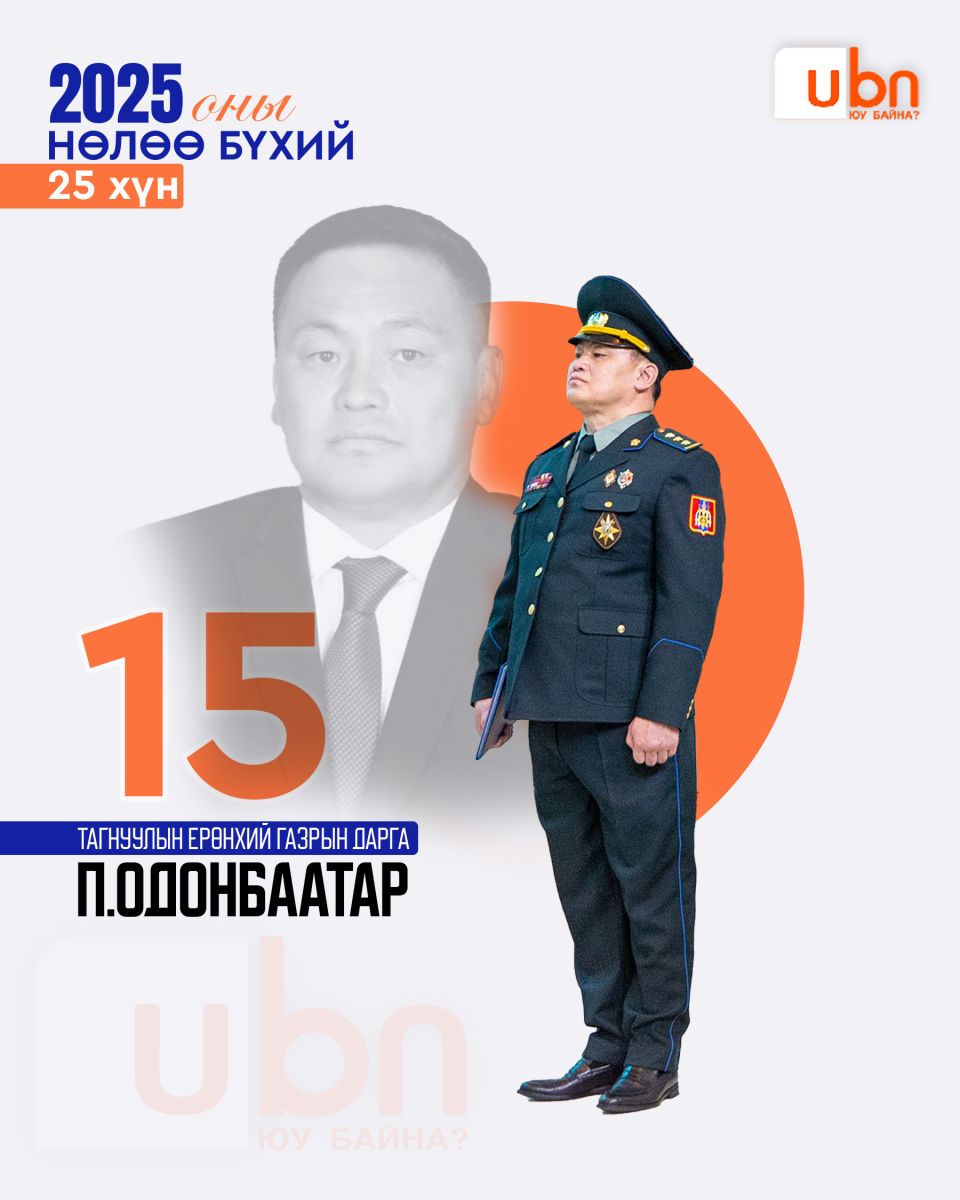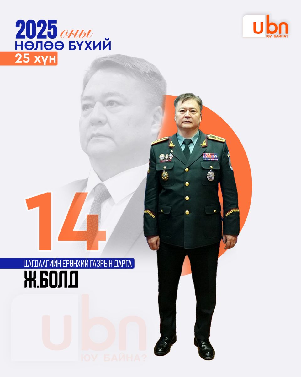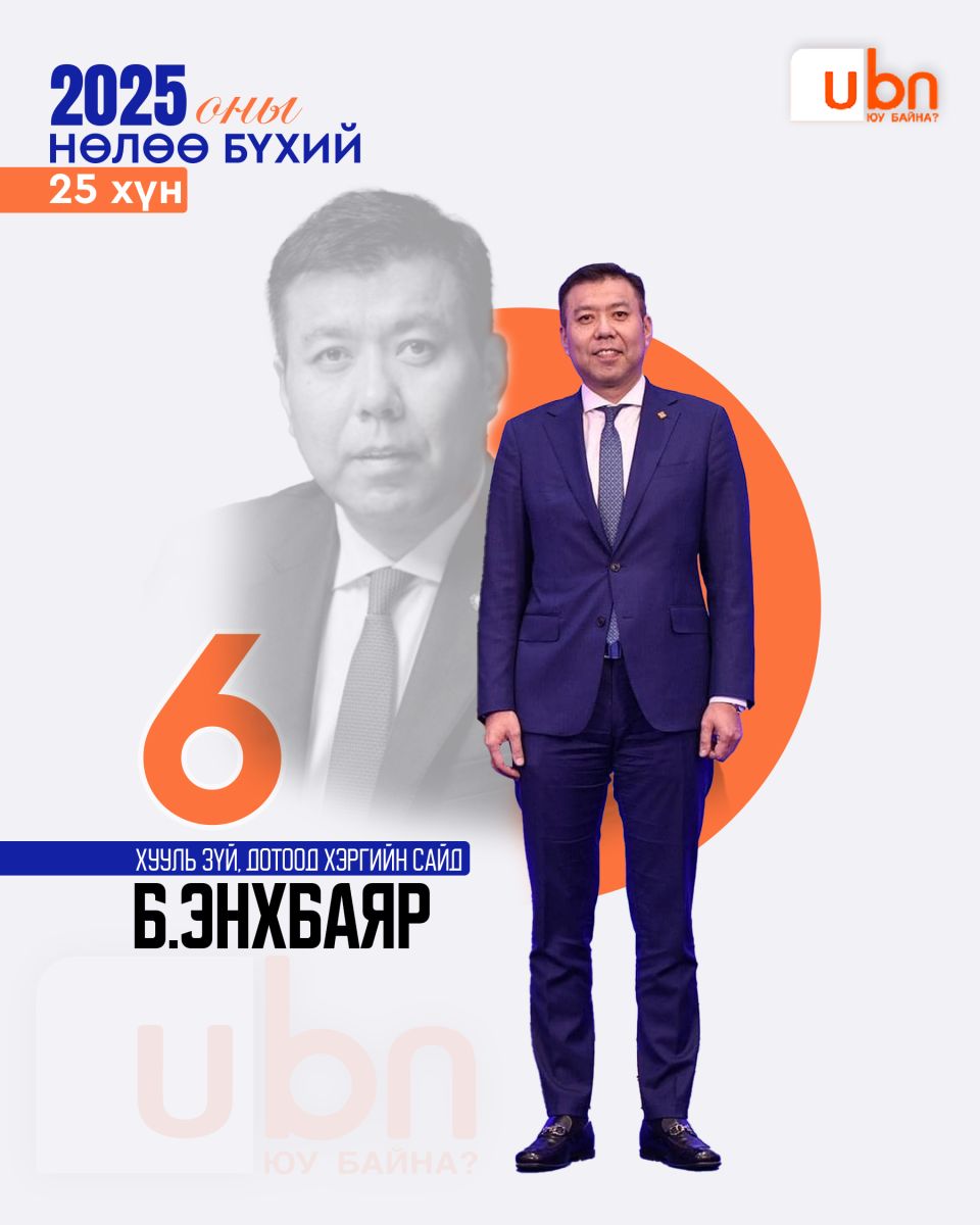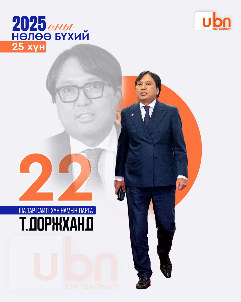 Ubn.mn мэдээллийн сайт жил бүр тухайн оныхоо нөлөө бүхий эрхмүүдийг нэрлэдэг уламжлалтай. Тэгвэл яг одоо бид 2025 оны нөлөө бүхий 25 эрхмийг нэрлэж байна. Нөлөө бүхий гэдэг нь шилдэг, сайн гэсэн утга огт биш. Сайнаар ч бай муугаар ч бай нийгмийн амьдралд хүчтэй нөлөө үзүүлж буй хүмүүсийг энэхүү номинацид шалгаруулсан ба олон нийтийн санал асуулга, экспертүүдийн үнэлгээг хослуулж оны нөлөө бүхий 25 хүнийг танд танилцуулж байгаа нь энэ билээ.