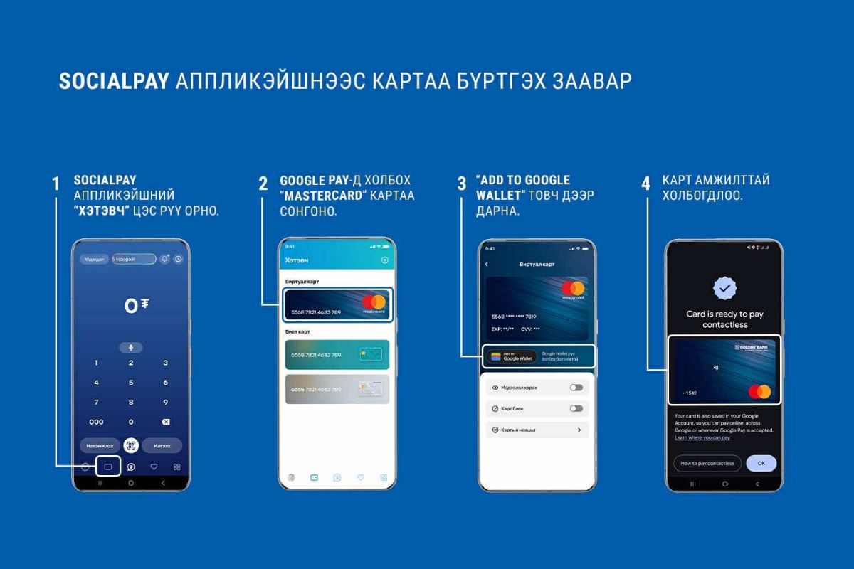 Голомт банк дэлхийн олон оронд өргөн хэрэглэгддэг Apple Pay болон Google Pay төлбөрийн хэрэгсэлд өөрийн картыг нэвтрүүлснээр олон улсад төлбөр тооцоо хийх гарцыг нэмэгдүүлэх, төлбөр тооцооны асуудлаа хялбарчлах бас нэгэн боломжийг бүрдүүлсэн.