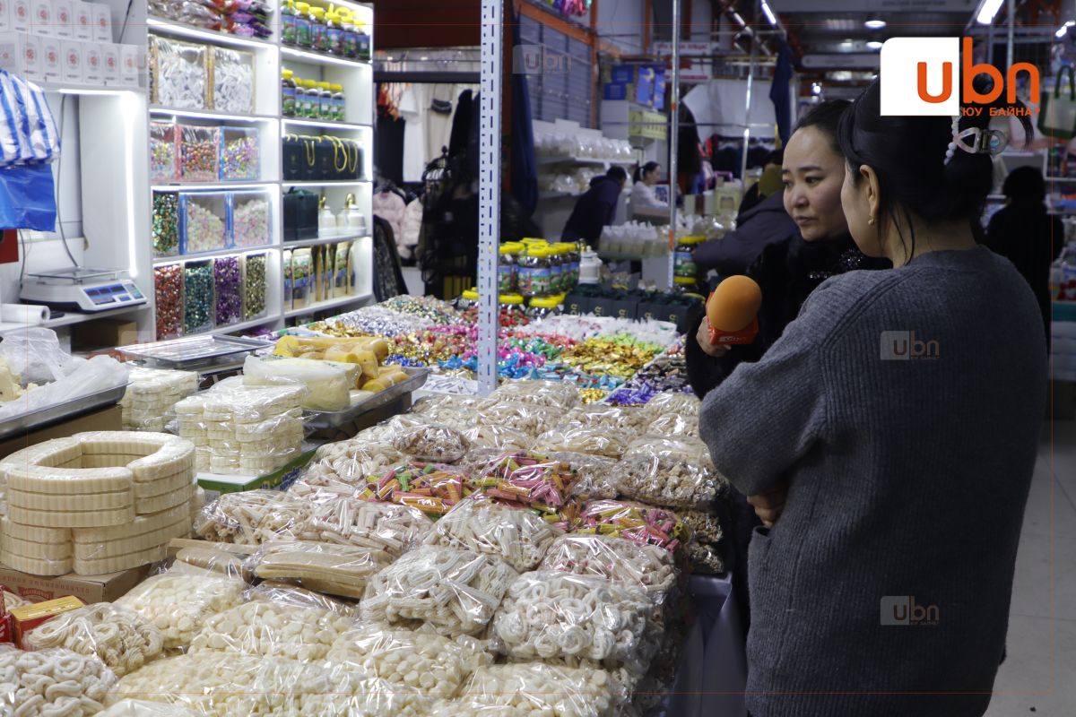 -Сар шинийн баяраар Дүнжингаравын үзэсгэлэн худалдаанд гараад 10 гаруй жил болж байна. Манай лангуу орос чихрүүдийг хямд үнээр зардгаараа онцлогтой. Үрэлнүүд бусад газар 55 мянган төгрөгөөр зарагдаж байхад манайд 50 мянгаар зарагдаж байна. Орос үрэлнүүд 45-50 мянга, хятад үрэл 15-20 мянга. Нандин чавга 20-30 мянга, хар чавга 20-30 мянга, хасарваан 15-20 мянга. Орос чихэрнүүд кг тутамдаа 35-70 мянган төгрөгөөр худалдаалагдаж байна.