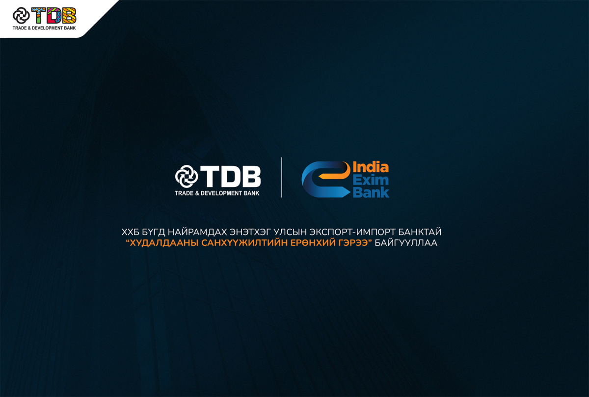 Худалдаа Хөгжлийн Банк Бүгд Найрамдах Энэтхэг Улсын Экспорт‑Импорт банктай (IndiaEXIM) худалдааны санхүүжилтийн хамтын ажиллагааг эхлүүлэх “Master Trade Loan Agreement”-г албан ёсоор байгууллаа.