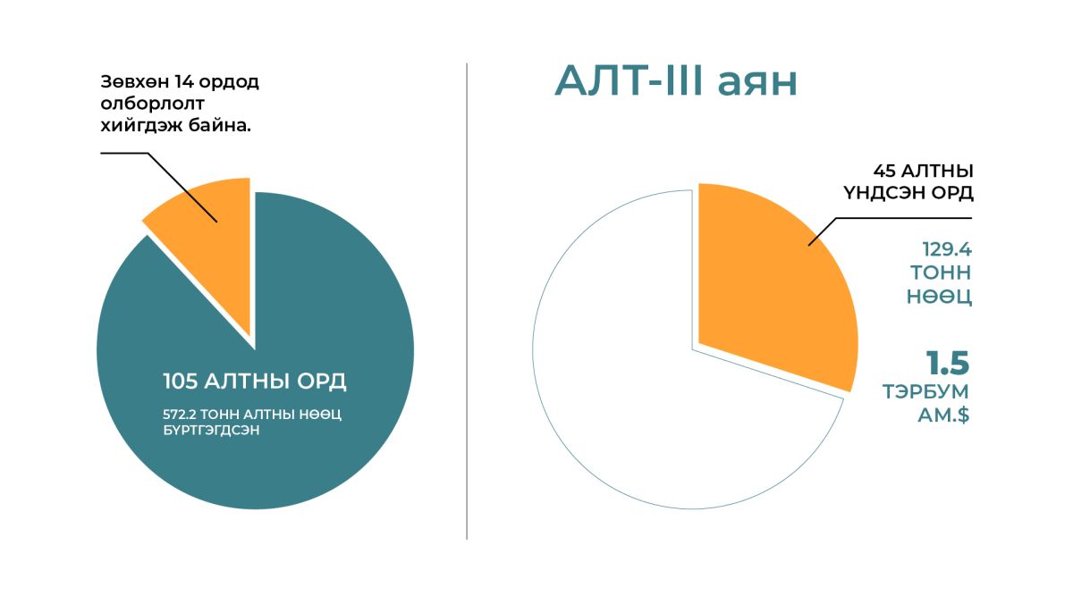 Харин цаашид алтны үнэ өсөхөд бид өчигдөр, өнөөдрийнх шигээ алтны үнийн өсөлтийг гайхаж суухын оронд бодит өгөөжийг нь хүртэхийн тулд өнөөдөр төр, хувийн хэвшилгүй хичээх ёстой. Авдрын ёроолд хав дарсан алтаа гаргаж ашиглаж “сурах”-ын тулд төр нь хууль эрхзүйн орчноо эргэн харж, чөдөр болсон хуулийн зүйл заалтуудаа гадаадын хөрөнгө оруулагчдыг татах нээлттэй болгох чиглэлд өөрчилж, цаасан дээрх том төсөл нэртэй овоолсон шороонуудаа алт болгох цаг нь болсон. Үүний хамгийн том хөшүүрэг нь “Алт-III” аян байх болно. Уг хөтөлбөр хэрэгжсэнээр дунд хугацаандаа 45 алтны үндсэн ордын нийт 129.4 тонн нөөцийг эдийн засгийн эргэлтэд оруулж, тушаах алтны хэмжээ жилд 10 тонноор нэмэгдэнэ гэж тооцоолж байна. Энэ нь одоогийн ханшаар 1.5 тэрбум ам.доллар орчим болох юм. Иймд өнөөдөр орлогын үүцээ задлах нь нэн тэргүүний ажил. Энэ агуулгаараа Аж үйлдвэр эрдэс баялгийн яамнаас эдийн засгийн эргэлтэд оруулах чухал ордын жагсаалт гаргаж Засгийн газарт тогтоол батлуулахаар зэхэж байгаа аж.