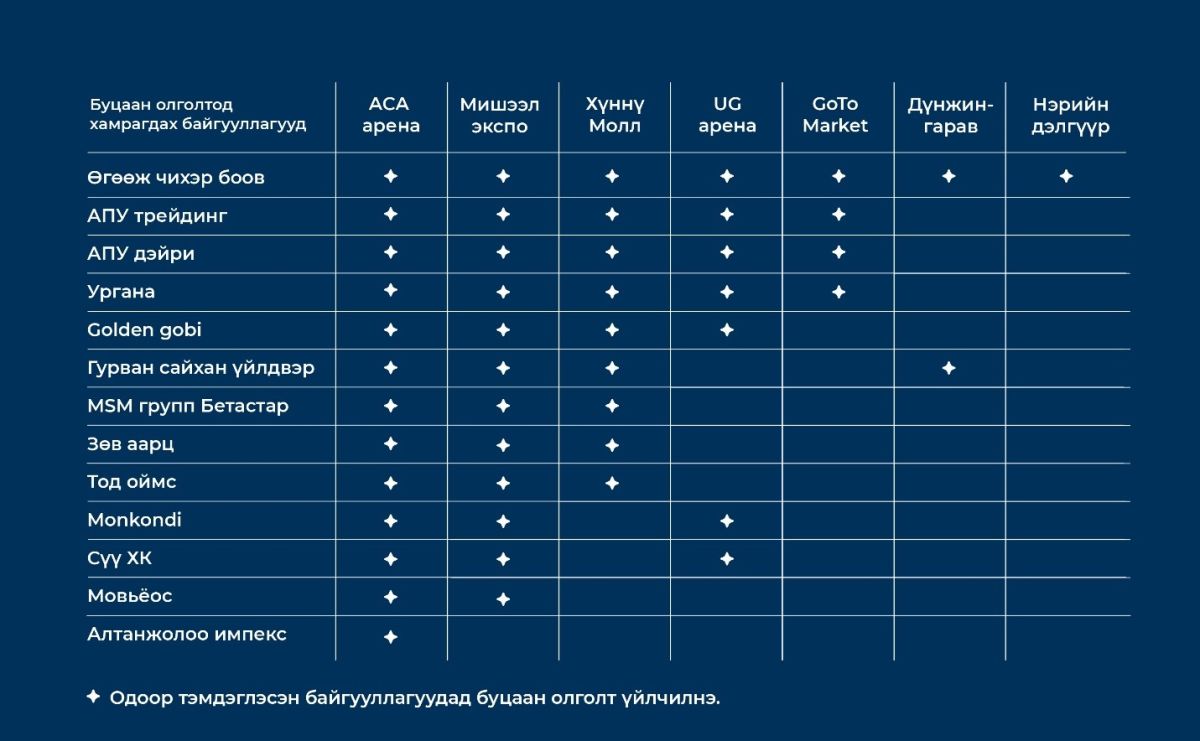 Буцаан олголт үйлчлэх байгууллагууд нь цагаан сарын томоохон үзэсгэлэн худалдаа, экспо дээр ажиллаж байгаа тул та сар шинийн бэлтгэлээ базааж, худалдан авалт хийхдээ Голомт банкны кредит картаа заавал ашиглаарай.