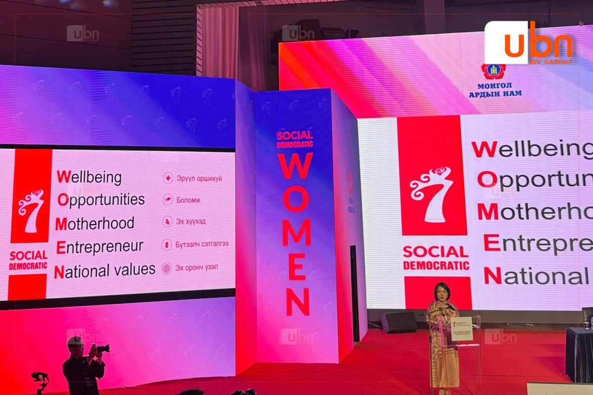 Тэрбээр “МАН-ын дэргэдэх Социал демократ Монголын эмэгтэйчүүдийн хичээл зүтгэл, оролцоо, манлайллын үр дүнд бүх шатны сонгуульд намын олон ялалтыг байгуулж байсан. Манай Х.Булгантуяа ерөнхийлөгч Социал Демократ Монголын Эмэгтэйчүүдийн Холбоог тэргүүлж ажиллах он цаг хугацаанд Улсын Их Хурлын сонгуулийн тухай, Улс төрийн намын тухай хуулиудыг баталж, эмэгтэйчүүдийн оролцоог бүх шатны сонгуульд нэр дэвших жендэрийн квотыг нэмэгдүүлэх чиглэлээр манлайлал гаргаж, идэвхтэй байр суурийг илэрхийлж ажилласны үр дүнд өнөөдөр түүхэнд анх удаа УИХ-ын нийт гишүүдийн 4-ний 1 буюу 32 эмэгтэй гишүүн, тэр дундаа манай намын 15 эмэгтэй УИХ-ын гишүүн сонгогдон ажиллаж байгааг бахархалтайгаар хэлэхийг хүсэж байна” гэлээ.