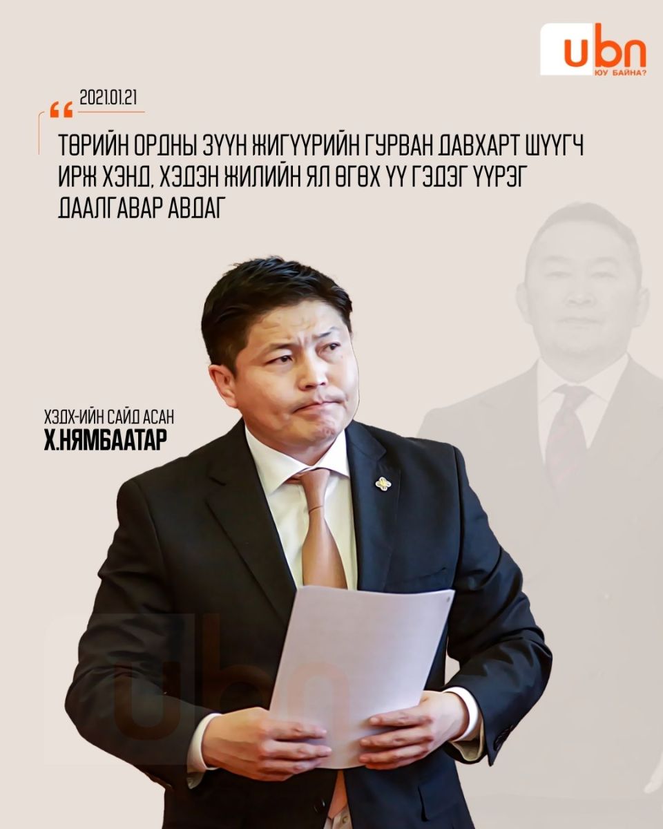 Одоогийн Хотын дарга Х.Нямбаатар 2021 онд ХЗДХ-ийн сайдаар ажиллаж байх үедээ Шүүхийн тухай хууль болон Авлигын эсрэг хуулийг батлуулах үеэр Ерөнхийлөгчөөс шахалт ирж байсан талаараа мэдэгдсэн. Энэ үеэрээ тэрбээр "Шударга бусын хонгилыг нураахын тулд шүүхийн тухай хууль, авлигын эсрэг хуулиудыг шинэчлэн батлах ажлыг энэ ЗГ хамтдаа хийлээ. МУ-ын Ерөнхийлөгчид төвлөрсөн эрх мэдлийг салгана гэдэг тийм ч амар зүйл биш юм байна. Ерөнхийлөгчийн зүгээс Шүүхийн тухай хуулиа тат гэдэг шахалтыг хууль санаачлагчийн хувьд надад удаа дараа тавьж байсан. Төрийн ордын зүүн жигүүрийн гурван давхарт шүүгч ирж хэнд, хэдэн жилийн ял өгөх үү гэдэг үүрэг даалгавар авдаг ёсыг халахын тулд Ерөнхийлөгчийн шахалтыг хүлээж аваагүй" гэж хэлж байсан юм.