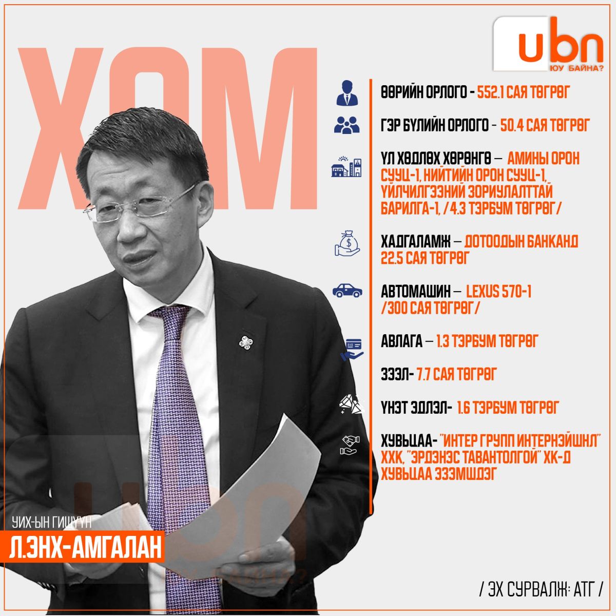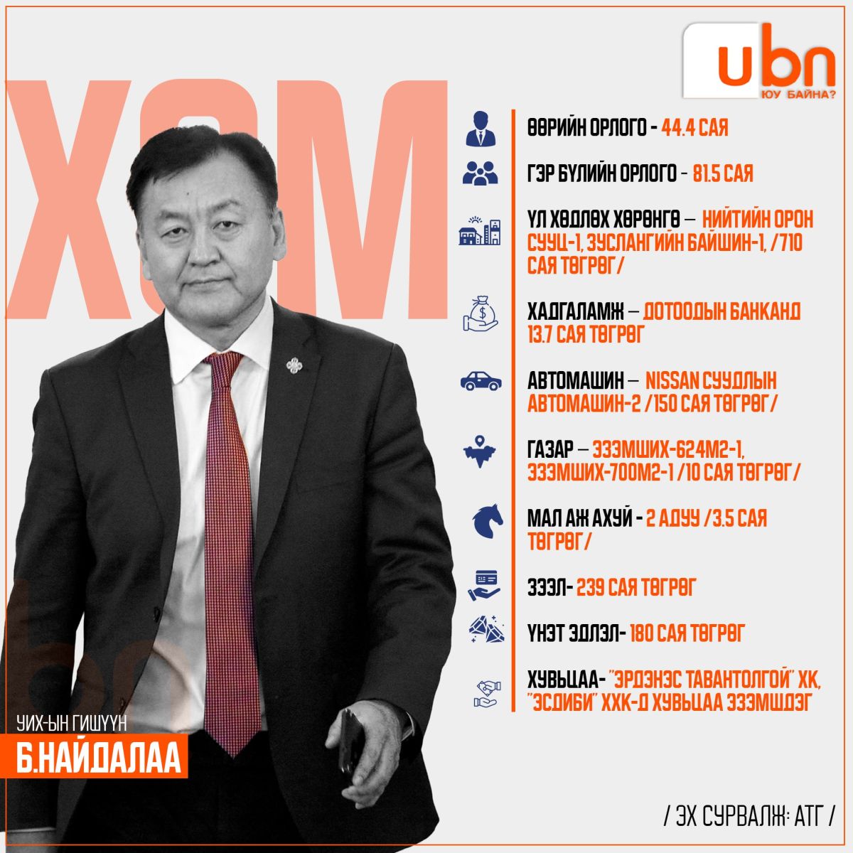 Тэгвэл шинэ сайд нарын АТГ-т мэдүүлсэн хөрөнгө, орлогын мэдээллийг танилцуулж байна.