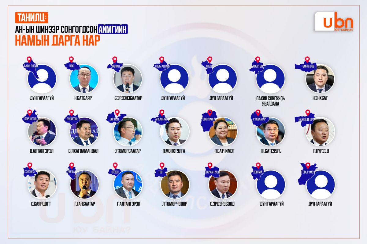 Ардчилсан нам дотоод сонгуулиа зохион байгуулж аймаг, нийслэл, сум, дүүргийн намын хорооны дарга, ҮБХ-ны гишүүдээ сонгож эхэлсэн билээ. 21 аймгаас Хөвсгөл аймагт дахин сонгууль явагдахаар болсон бол Говьсүмбэр, Баян-Өлгий, Ховд, Говь-Алтай зэрэг аймгийн дүн эцэслэгдээгүй байна. Ингээд албан ёсоор тодорсон аймгийн намын хорооны дарга нар болон дүн эцэслэгдээгүй аймгуудыг танилцуулбал,