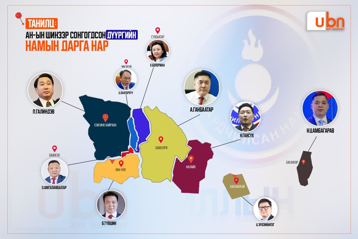 Ардчилсан нам дотоод сонгуулиа зохион байгуулж аймаг, нийслэл, сум, дүүргийн намын хорооны дарга, ҮБХ-ны гишүүдээ сонгож эхэлсэн билээ. Нийслэл Улаанбаатар хотын тухайд, 9 дүүргээс Багахангай дүүргээс бусад дүүргийн намын дарга нар тодорсон байна. Тодруулбал,