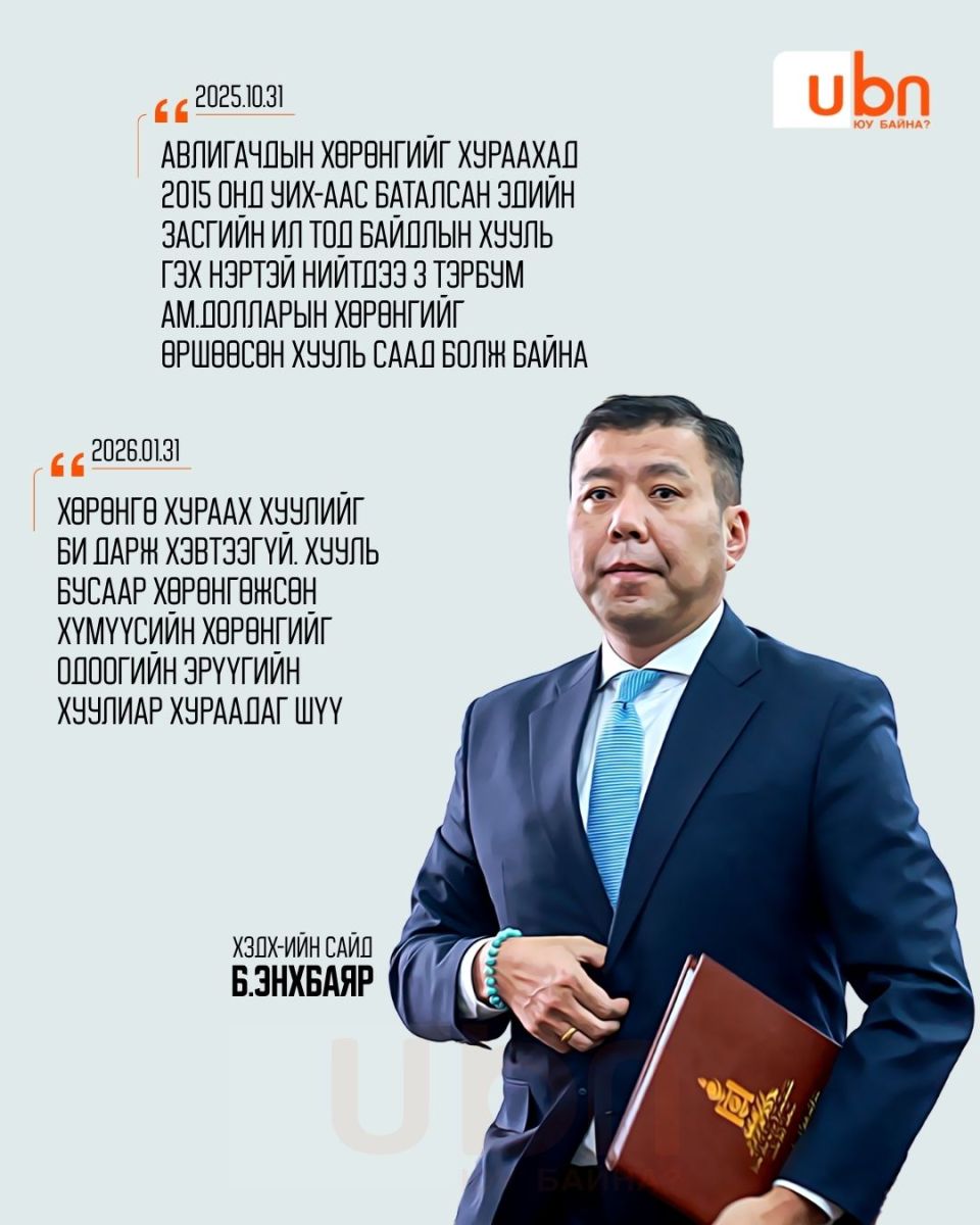 Одоогоос арван сарын өмнө буюу 2025 оны тавдугаар сарын 21-нд Нийтийн албан тушаалтны хууль бус хөрөнгийг хураан авах, нөхөн төлүүлэх тухай хуулийн төслийг тухайн үеийн УИХ-ын дарга Д.Амарбаясгаланд өргөн барьж байв. Гишүүнээр сонгогдохоосоо ч өмнө хөрөнгө хураах асуудлыг хөндөж байсан тэрбээр ХЗДХ-ийн сайдаар томилогдсоноосоо хойш Ерөнхий сайдын дэмжлэгтэйгээр эл хуулийн төслийг өргөн барьсан юм. Түүний өргөн барьсан хуулийн төслийг өнөөдрийг хүртэл хэлэлцэж эхлээгүй хэвээр байгаа.