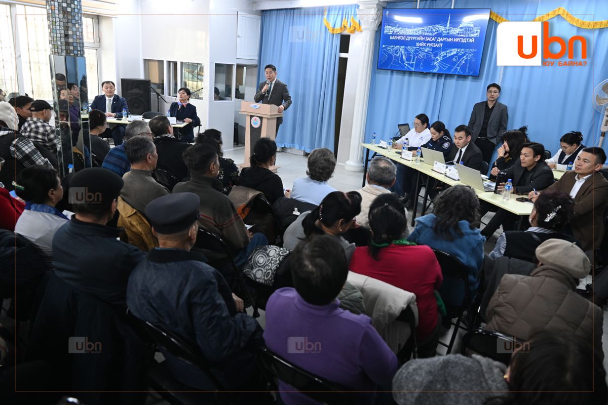 Баянгол дүүргийн Засаг дарга Ө.Сумъяабаатар тухайн хорооноос сонгогдсон дүүргийн ИТХ-ын төлөөлөгч болон Засаг даргын Тамгын газрын алба, хэлтсийн дарга нарын хамт дүүргийн 1-34 хорооны иргэд, оршин суугчидтай хуваарийн дагуу уулзаж байна. Иргэдтэй уулзах уулзалтын үеэр холбогдох хэлтсийн дарга нар дүүрэг болон тухайн хороонд 2025 онд хийсэн бүтээн байгуулалтын ажил, 2026 онд шинээр хийх хөрөнгө оруулалтын ажлын талаар мэдээлэл өглөө.
