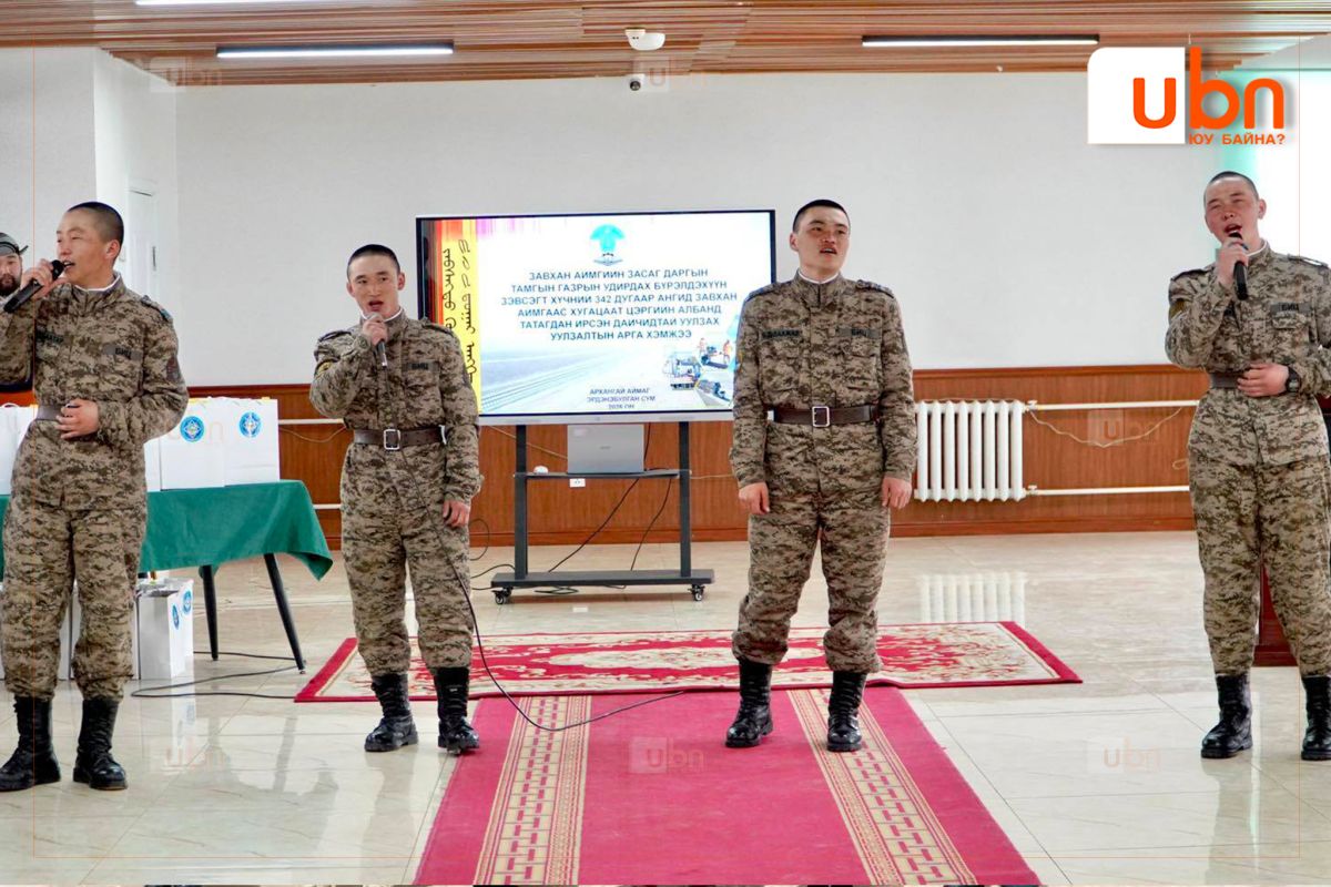 Завхан аймгийн Засаг даргын орлогч Д.Уужимсанаагаар ахлуулсан бүрэлдэхүүн Архангай аймаг дахь дугаар ангид алба хааж буй цэрэг дайчдаа эргэж, аймгийн Засаг даргын мэндчилгээг дамжуулж, гарын бэлгийг гардууллаа. Мөн гэр бүлийн захидал илгээмжийг хүлээлгэн өгчээ.