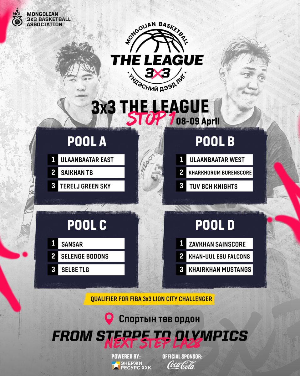 3х3 The League шинэ улирлын эхний Light Quest Stop-1 тэмцээн энэ сарын 8-9 нд Спортын төв ордонд болно. Тус тэмцээний аварга баг ирэх зургаадугаар сарын 20-21 хооронд Сингапур улсад болон ФИБА 3х3 Лион Сити Чалленжер тэмцээний эрх авах юм.