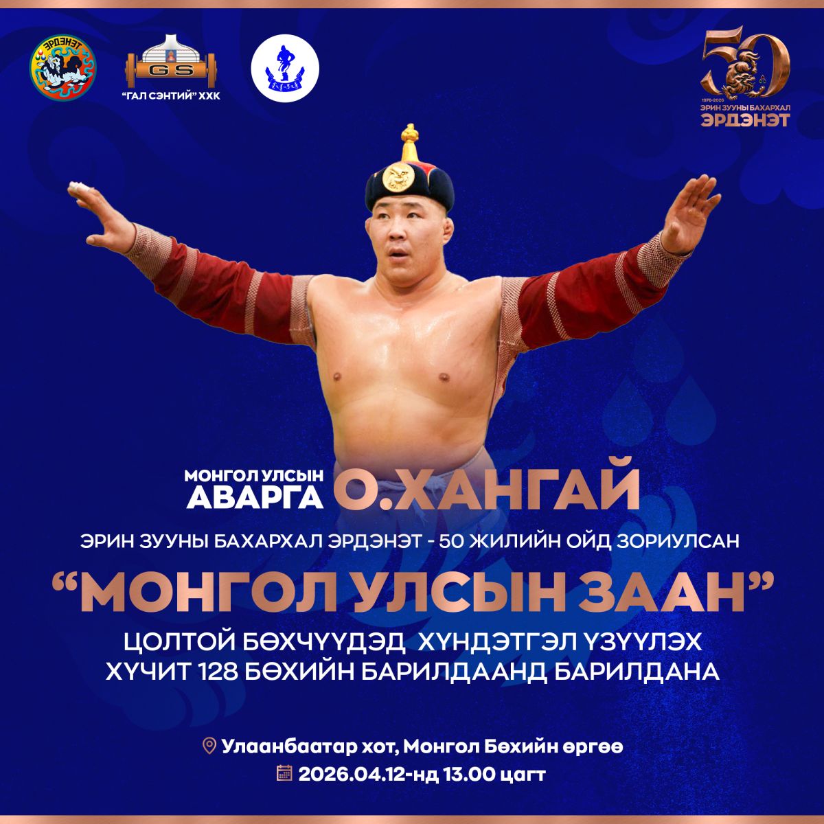 Тэгвэл тус барилдаанд Монгол Улсын аварга О.Хангай, улсын заан Б.Пүрэвсайхан, Б.Бат-Өлзий нар барилдана. Тасалбарыг https://ticket.mn/event/date/11773 худалдаалж байна.