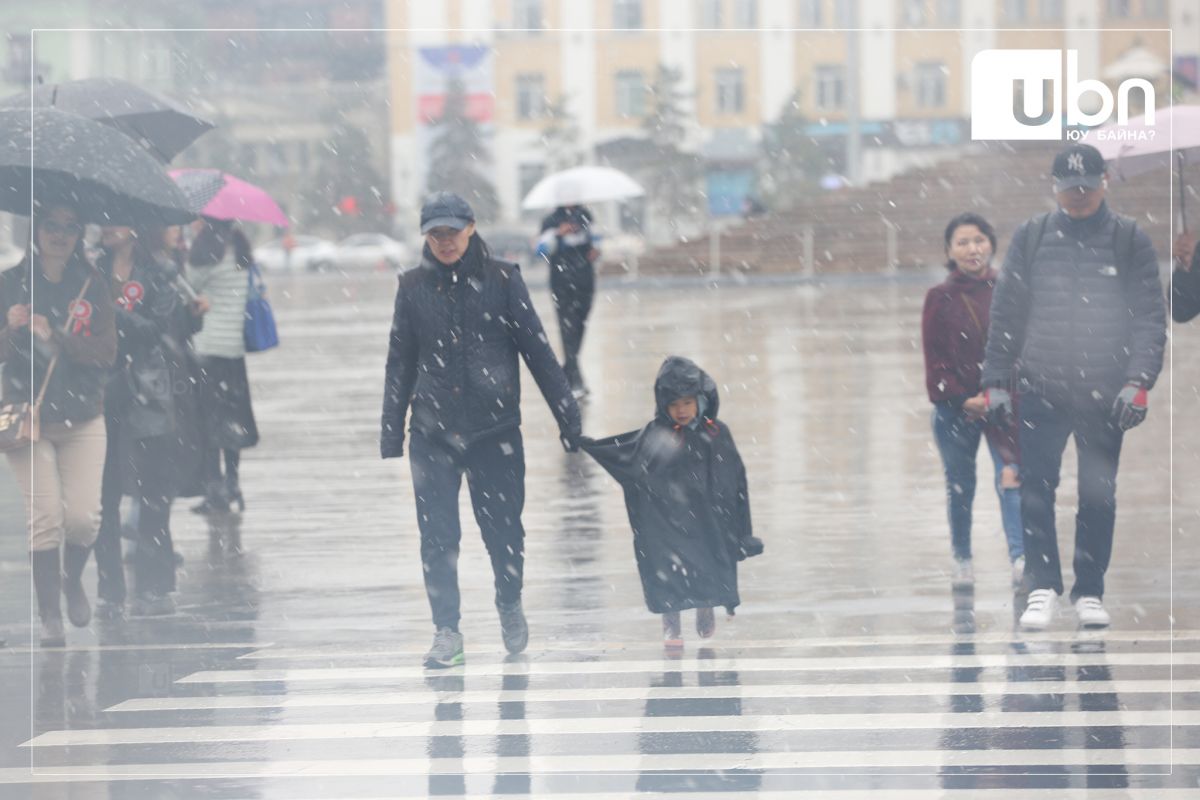 УЛААНБААТАР ХОТ ОРЧМООР: Үүлшинэ. Шөнөдөө хур тунадас орохгүй, өдөртөө ялимгүй хур тунадас орно. Салхи баруунаас секундэд 5-10 метр, өдөртөө зарим үед секундэд 12-14 метр хүрч ширүүсэж, шороон шуурга шуурна. Сэрүүсэж, шөнөдөө Яармаг-Сонгины орчмоор -9...-11 градус, бусад хэсгээр -6...-8 градус хүйтэн, өдөртөө +2...+4 градус дулаан байна.