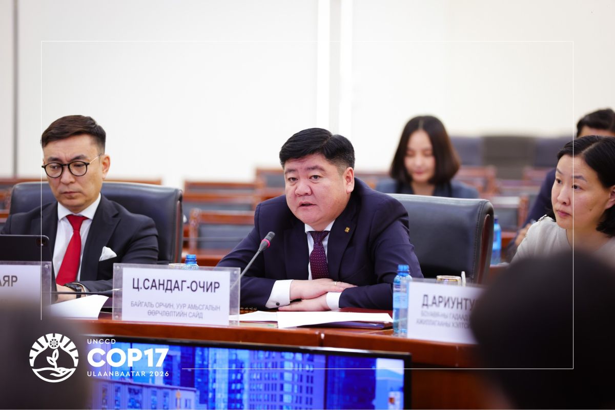 Байгаль орчин, уур амьсгалын өөрчлөлтийн сайд Ц.Сандаг-Очир, Гадаад харилцааны сайд Б.Батцэцэгтэй уулзаж, Цөлжилттэй Тэмцэх тухай НҮБ-ын Конвенцын Талуудын 17 дугаар Бага Хурал (КОП17)-ын бэлтгэл ажлын талаар санал солилцлоо.