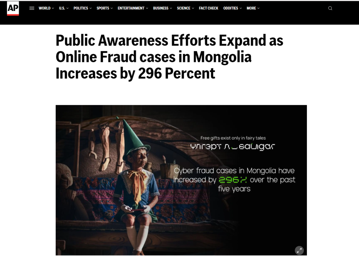 - мөн 40 гаруй салбарын олон улсын newswire-уудаар дамжин 4,000 гаруй веб сайтад түгсэнээр Монгол Улсад тулгамдаж буй онлайн залилан, кибер аюулгүй байдлын асуудлыг дэлхийн түвшинд хүргэж чаджээ.